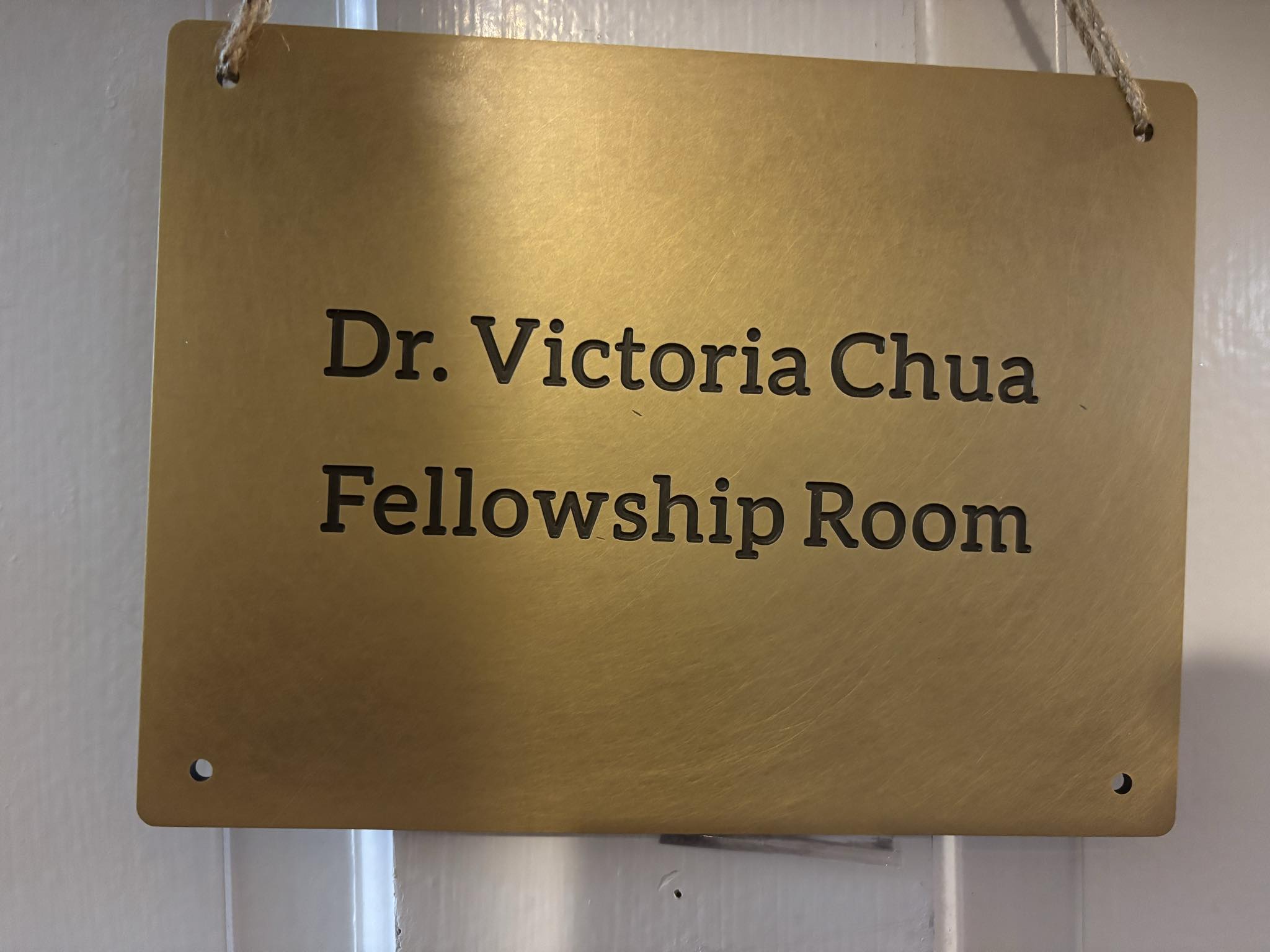 It was with great privilege and honor that a dedication service was hosted to honor Dr. Chua’s service and to officially designate the room as the “Dr. Victoria Chua Fellowship Room”. Pastor Michael Miano stepped down from the pulpit mid-sermon to lead the officiating of the service and read through the proclamation. Deacon Brian Johnston, who initiated the idea along with his wife, Sandra, shared thoughts of appreciation for Dr. Chua. Elder Steve Hernandez concluded the dedication service with a prayer regarding the designation of the room as a God-honoring use of the church building and implored each of to continue with the attitude of care, concern, family, and service that Dr. Chua continues to exhibit.
