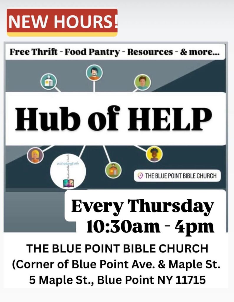 Tomorrow, Thursday, Jan. 15th, we open up the “Hub of Help” @ BPBC for our 1st time this year. We are in need of donations, volunteers, and ideas. We have new hours – 10:30am to 4pm. Our volunteer hours are from 8am – 4pm. Please see and promote the attached graphic.